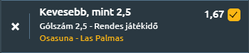- A Las Palmas nehezen kezdte a szezont, az első öt meccsükön mindössze két pontot gyűjtöttek, és a 19. helyen állnak a tabellán, ennél rosszabbul csak a Valencia teljesít a spanyol élvonalban. Luis Carrion csapata 2-2-es döntetlent ért el a Sevilla ellen a nyitányon, majd kikapott a Leganestől, de augusztus végén sikerült 1-1-es döntetlent elérnie a Real Madrid ellen, ami a szezon eddigi legjobb eredménye volt. Utána pedig két vereséget szenvedtek el, az Alaves és az Athletic Bilbao ellen. Gyenge forma ez, nem valószínű, hogy bármire is elég lehet a La Ligában. Alex Suarez sérült, de Adnan Januzaj és Pejino is hiányzik majd a vendégeknél. A sárgák minden bizonnyal beállnak védekezni és megpróbálnak az egy pontra apellálni, ha pedig ennél több sikerül, az csak öröm lesz. Az Osasuna mindent megpróbál majd, hogy feltörje a reteszt, de ez túl sokszor nem sikerül majd. Kevés gólt várhatunk.