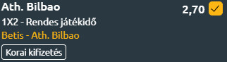 Ez jól előrevetíti, milyen összecsapásra számíthatunk, ami kombinálva a Betis esetleges fáradtságával jó lehetőséget teremt egy bilbaói pontszerzésre vagy akár győzelemre.