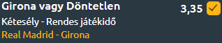 Emiatt a Girona gólszerzését és pontszerzését sem tartjuk kizártnak. A katalán csapat a 12. helyen áll a bajnokságban, ami várható gólkülönbségüket tekintve hízelgő rájuk nézve. Védekezést tekintve a negyedik leggyengébbek a bajnokságban, tehát a fehéreknek jó esélyük lesz a gólszerzésre.