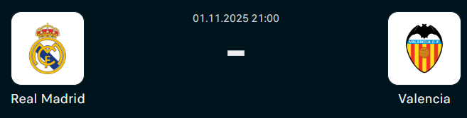 A Real Madrid a szenvedő Valenciát fogadja a spanyol bajnokságban. A hazaiak a Barcelona 2-1-es legyőzését követően 5 pontosra növelték előnyüket a tabella tetején. A Valencia formája megint rossz, az elmúlt 5 meccsen nyeretlen, 2 szerzett ponttal. A madridiak jól kezdték a Xabi Alonso-érát, a baszk jól kezeli az öltözőt, Viníciusszal kapcsolatos nehézségeket is jól old meg, amit elősegítenek az eredmények.