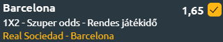 Vasárnap este a címvédő Barcelona a Real Sociedadhoz látogat a spanyol bajnokságban. A Real Sociedad hazai pályán veszélyes szokott lenni a legjobb csapat ellen is, de a Barcelona kiváló formában van, az elmúlt 11 tétmeccsét megnyerte a katalán csapat.