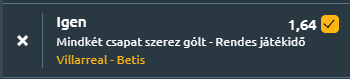 - A Betis három mérkőzéses veretlenségi sorozattal érkezik a találkozóra, miután december 4-én 3-1-es győzelmet arattak a Sant Andreu ellen a Király Kupában, majd a legutóbbi La Liga mérkőzésükön 2-2-es döntetlent játszottak a Barcelona ellen. A Real Betis 2-1-es hátrányban volt a katalánok elleni mérkőzésen, de a meccs végén, Aitor Ruibal gólpasszát követően Assane Diao egyenlített, így a sevillai csapat pontot szerzett, ami mindenképp jó eredmény a Barca ellen. A Zöld-fehérek a 11. helyen állnak, de mindössze három pontra a 6. helyezett Real Sociedad-tól, így a tabellán sok minden változhat egy rövid időn belül. A harmadik veretlen meccs pedig a nemzetközi kupában volt, 1-0-ra legyőzték a Petrocub csapatát, ezzel a teljesítménnyel a 17. helyen állnak a Konferencia Ligában, három pontra az automatikus továbbjutást jelentő helyektől. Mindenképp szoros meccset várhatunk, a két csapat között nincs nagy különbség! A Villarreal mostanában gyengébben szerepelt, de hazai pályán általában jobb formát mutatott, míg a Real Betis idegenbeli teljesítménye gyenge, hiszen nyolc idegenbeli mérkőzésükből csupán egyet nyertek. Viszont az elmúlt meccseken mutatott hatékonyság alapján a Betis is képes lesz betalálni, míg a Villarrealnak hazai környezetben ez szinte kötelező!