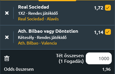 - Athletic Bilbao – Valencia: A Bilbao csodálatos szezont futott tavaly! A bajnokságban az 5. helyen végeztek és mellé megnyerték a Király Kupát, amit egymillió ember ünnepelt a baszk városban! A baszkok a szezonnyitó mérkőzésen 1-1-es döntetlent értek el a Getafe ellen, majd a szombati, Barcelona elleni idegenbeli összecsapáson szűk 2-1-es vereséget szenvedtek. Oihan Sancet az első félidőben büntetőből szerzett góljával zsinórban másodszor is betalált, és kiejtette Lamine Yamal találatát, de Robert Lewandowski 75. percben szerzett találatával az Athletic vereséget szenvedett. A két meccsből azt gondolom, hoy a Getafe elleni X az, ami kudarc, a Barcelonától ki lehet kapni. Ma mindenképpen javítani kell hazai körülmények között! A Valencia tavalyi idénye csalódást keltő véget ért, hiszen az utolsó hét mérkőzésükön mindössze két pontot szereztek. A gárda számára ez a gyenge forma az új szezonban is folytatódott, mivel a pontvadászatot két vereséggel kezdték, annak ellenére, hogy mindkét mérkőzésen vezetést szereztek. A Barcelona elleni hazai találkozón szűk 2-1 lett a vége, majd a pénteki, Celta elleni idegenbeli mérkőzésen kiábrándító 3-1-es bukóba futottak bele. A Valencia április 15-e óta nem nyert a bajnokságban! Bilbaóban mindenkinek nagyon nehéz és ez a gárda nem felejtett el focizni. Szerintem ma ők nyernek, de a gyenge kezdés miatt a döntetlent is figyelmbe veszem! 1X a tipp.
