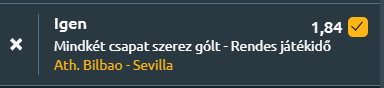 Egy Single Value Tipp következik, vagyis a sportfogadásban egy olyan értékelhető szorzó, amely single játékba küldés esetén is értéket hordoz magában! A Sevilla sorozatos vereségek után próbálna meg javítani, de Baszkföldön nagyon nehéz dolguk lesz a Bilbao vendégeként. És mivel a hazaiak is vereséget szenvedtek legutóbb a Celta Vigo ellen, így hajtós, támadó felfogású mérkőzést várhatunk.