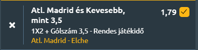 Tipp: Atletico Madrid nyer és kevesebb, mint 3,5 gól a meccsen