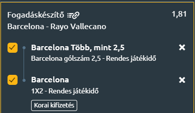 Egy Single Value Tipp következik, vagyis a sportfogadásban egy olyan értékelhető szorzó, amely single játékba küldés esetén is értéket hordoz magában! A Barcelona hazai pályán, a tabella éléről fogadja a Rayo Vallecano együttesét, és győzelemmel tovább növelheti előnyét üldözőivel szemben.