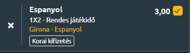 Egy Single Value Tipp következik, vagyis a sportfogadásban egy olyan értékelhető szorzó, amely single játékba küldés esetén is értéket hordoz magában! Katalán derbi a Barcelona nélkül a La Ligában! Ez várható ma, ahol a sereghajtó Girona az Estadi Montiliviben fogadja a remek formában lévő Espanyolt. A hazaiak eddig mindössze két pontot gyűjtöttek hat forduló alatt, míg a vendégek a tabella negyedik helyéről várják az összecsapást.
