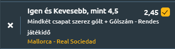 - A Mallorca nehéz helyzetben van, mivel az előző meccsükön a Villarreal elleni utolsó percekben kapott gól miatt szenvedtek 2-1-es vereséget. Ráadásul Toni Lato piros lapja miatt emberhátrányban fejezték be a találkozót, ami megnehezítette a pontszerzési esélyeiket. Jagoba Arrasate irányításával a szezon eddigi öt mérkőzéséből csak egyet nyertek meg, és a hazai pályán eddig nyeretlenek. Tovább rontja a helyzetüket, hogy utóbbi öt hazai meccsükön nem tudtak nyerni a Real Sociedad ellen, legutóbb 2012-ben győztek. A mester több fontos játékost is nélkülözni kénytelen, köztük Pablo Maffeót és Toni Latót, aki eltiltás miatt nem játszhat. Ennek ellenére a Mallorca nem tehet mást, mint hazai pályán támad és megpróbálja megszerezni a három pontot. Továbbá a La Liga erős bajnokság, itt a keretekben olyan kiváló fiatal tehetségek is szunnyadnak, akik bármikor felhívhatják magukra a figyelmet. Lásd tavaly Girona! Szóval hazai környezetben a sebzett oroszlánként küzdő Mallorca jó lehet minimum egy gólra még a Real Sociedad ellen is!