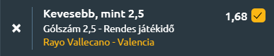 Egy Single Value Tipp következik, vagyis a sportfogadásban egy olyan értékelhető szorzó, amely single játékba küldés esetén is értéket hordoz magában! Nem lesz könnyű meccse a Valenciának a fővárosban, ahol a kevés gól és a kőkemény védekezés kerülhet előtérbe az Estadio de Vallecasban.