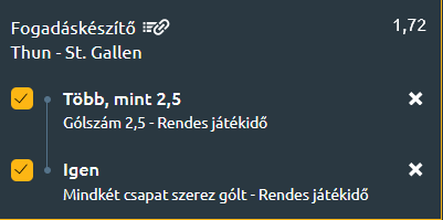 - A St. Gallen is szépen menetel, őrzi veretlenségét, igaz, a zöld-fehérek azért játszottak néhány döntetlent a közelmúltban. A táruslat most 50 pontos, azaz biztosan részese lesz a felsőházi rájátszásnak a gárda is. Január 25-e óta nem kapott ki a brigád, és a kupában is áll még. Legutóbb a sereghajtót gyűrte le 2-1-re. Idegenben is erős a sereg, a 7-4-2-es statisztikájához 27-16-es találati mutató párosul.