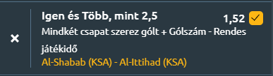 Ezek az ötletek kiválóan alkalmasak arra, hogy egy kétmeccses duplázóban az egyik tagot adják. Az odds alacsonyabb, viszont ezzel párhuzamosan a kockázat mértéke is csökken. A 2024–25-ös Szaúdi Pro Liga frissen koronázott bajnoka, az Al Ittihad örömmámorban úszva utazik a hatodik helyen álló Al Shabab otthonába a szezon utolsó előtti játéknapján. Nincs tét egyik oldalon sem, könnyen lehet ebből egy örömfoci szaúdi módra!