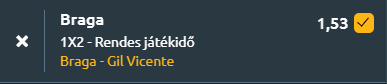 Ezek az ötletek kiválóan alkalmasak arra, hogy egy kétmeccses duplázóban az egyik tagot adják. Az odds alacsonyabb, viszont ezzel párhuzamosan a kockázat mértéke is csökken. A portugál élvonalban a 4. helyen álló-, és a nemzetközi kupaindulásért küzdő Braga hazai környezetben fogadja a 12. helyen tartózkodó Gil Vicente alakulatát.