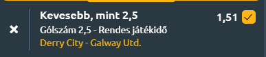 - Mire következtethetünk mindezek alapján? A statisztikák azt mutatják, hogy egy alacsony gólszámú mérkőzésre lehet számítani. Galway United utóbbi három idegenbeli mérkőzésén nem tudott gólt szerezni, és az elmúlt három egymás elleni mérkőzésükön is kevesebb, mint 2.5 gól született. Mivel a Derry City sem villogott támadásban az elmúlt fordulókban, minden jel arra mutat, hogy egy taktikus, óvatos találkozó várható kevés góllal!