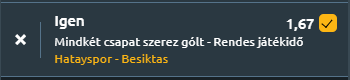 - A mérkőzés esélyei kiegyenlítettek, és valószínűleg szoros összecsapásra lehet számítani, ahol egyik csapat sem tud döntő fölénybe kerülni. A Besiktas tapasztalata és valamivel erősebb játékosállománya szólhat, míg a Hatayspor mellett a hazai pálya előnye és a javuló forma van. Gólváltás várható.