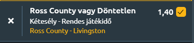 Ezek az ötletek kiválóan alkalmasak arra, hogy egy kétmeccses duplázóban az egyik tagot adják. Az odds alacsonyabb, viszont ezzel párhuzamosan a kockázat mértéke is csökken. A skót Premiership osztályozó döntőjének visszavágójára kerül ma sor, ahol a Ross County hazai pályán próbálja kiharcolni az élvonalbeli tagság megőrzését, míg a Livingston egyetlen lépésre van attól, hogy egy év másodosztály után újra feljebb jusson. Az első mérkőzés 1-1-es döntetlennel zárult, így minden nyitott a sorsdöntő visszavágóra.