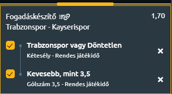 - A Trabzon védelme nagyon erős, ráadásul hazai pályán játszanak és így esélyesebbek a győzelemre. Ennek tükrében a fogadáskészítővel hoztam létre egy tippet, amely alacsony kockázattal bír, de a szorzó erős: