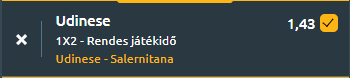 Ezek az ötletek kiválóan alkalmasak arra, hogy egy kétmeccses duplázóban az egyik tagot adják. Az odds alacsonyabb, viszont ezzel párhuzamosan a kockázat mértéke is csökken. A hétvégi bajnokin ú, a Rómától 3-0-ás vereséget szenvedő Udinese, az Olasz Kupában fogadja a Salerintanát. A csapatok második fordulóbeli mérkőzésének győztese a legjobb 16 közé jut, ahol az olasz bajnok Inter Milan vár rá a San Siróban.