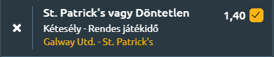 Ezek az ötletek kiválóan alkalmasak arra, hogy egy kétmeccses duplázóban az egyik tagot adják. Az odds alacsonyabb, viszont ezzel párhuzamosan a kockázat mértéke csökken! Az elemzéscsokorban olyan labdarúgó-mérkőzések esélylatolgató írásai olvashatóak, amelyeknek a szorzói 1,30 – 1,70 közti sávba esnek. Folytatódik az ír bajnokság, ahol a St Patrick’s Athletic Galwayba látogat, hogy megőrizze esélyét a dobogós helyezésre, miközben a hazaiak stabil középcsapatként szeretnének pontot rabolni.