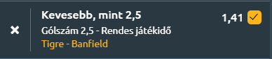 Ezek az ötletek kiválóan alkalmasak arra, hogy egy kétmeccses duplázóban az egyik tagot adják. Az odds alacsonyabb, viszont ezzel párhuzamosan a kockázat mértéke csökken! A Tigre és a Banfield összecsapásával folytatódik az argentin kupasorozat, ahol két-, némiképp eltérő képességű csapat csapat méri össze erejét.