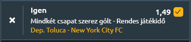 Ezek az ötletek kiválóan alkalmasak arra, hogy egy kétmeccses duplázóban az egyik tagot adják. Az odds alacsonyabb, viszont ezzel párhuzamosan a kockázat mértéke csökken! Akciódúsnak ígérkező összecsapásra kerül sor a Leagues Cup csoportkörének záró fordulójában, ahol a New York City FC a mexikói Toluca csapatát fogadja a legendás Yankee Stadionban. Mindkét együttes győzelemmel hangolt a találkozóra, így egyértelműen a továbbjutás kiharcolása a tét ezen a keddi estén.