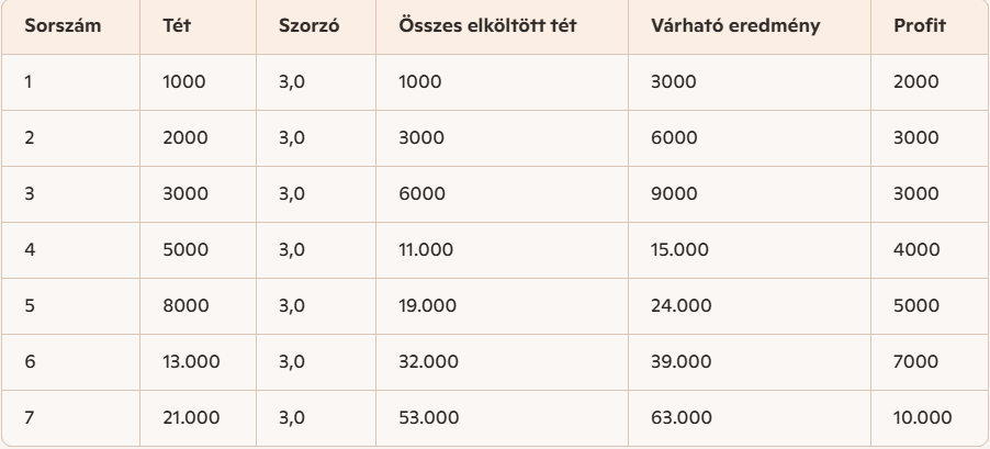 A Fibonacci stratégia működéséről részletesen ITT olvashattok! A bankroll menedzsmentről pedig ITT olvashattok.