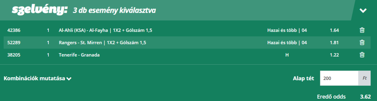 Ez a rovat egy olyan TIPPMIX-szelvényt kínál, amelynek az eredő szorzója kicsivel van 3,00 fölött. Vagyis ezek a szelvények kiválóan alkalmasak Fibonacci-sorozatokhoz, vagy egyéb-, bankrollmenedzsmentet alkalmazó stratégiához. Az eseményekről általában részletes elemzés is olvasható a Tipplap aktuális napi cikkei között. Sok sikert mindenkinek!