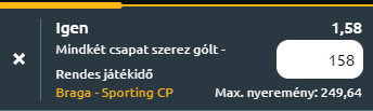 - A Sportingot nem kell bemutatni senkinek, aki szereti a focit. Számtalan bajnoki cím tulajdonosa a csapat, nemzetközi kupák örökös résztvevője. Jelenleg is vezetik a tabellát 46 ponttal, igaz, a Benfica tapad, 45 egységgel, de a Porto is csak 5 pontnyira van. A mérleg 45-19, impozáns. Vendégként is meggyőzőek: 9 meccsen 21-12 a mutató, 2 gól felett lőnek, 1 felett kapnak. A Braga egy rakkolós, hajtós gárda, egy gólra bárhol, bárki ellen képesek, az utolsó 19 hazai meccsükön mindig betaláltak legalább egyszer, egyetlen alkalmat leszámítva (odahaza 0:1 a Benfica ellen). Az utolsó 10 Braga - Sporting amúgy érdekes, 4-3-3, amiből az utolsó két összecsapásuk is döntetlen lett (1:1 és 3:3). Ettől még a Sporting a jobb csapat, és valószínűleg nyerni is fog, de nem megy haza kapott gól nélkül.