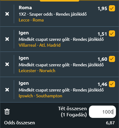 Pont az ilyen szelvényeknek nem ez a megfelelő rovata. Három meccset kockáztatni egy 1,83-as eredőért nonszensz.