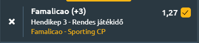 Tipp1: Famalicao (+3), vagyis még a 2-0-ás Sporting-győzelem is a tipp zöldülését jelenti! - 1,27