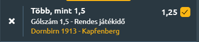 Tipp1: Több mint 1,5 gól a mérkőzésen - 1,25