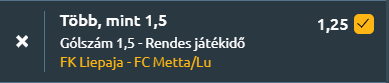 Mára a FK Liepaja - FC Metta/Lu lett bajnoki meccset hoztam. Egy alacsonyabb, szelvényrevaló szrozó és egy komolyabb single is játékba küldhető odds.