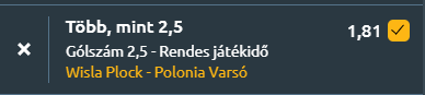 - A lengyel 1. Liga két élcsapata találkozik Płockban, ahol a 3. helyezett Wisła Płock fogadja a 6. pozícióban álló Polonia Warszawát. A tét nagy, mindkét csapat az élvonal felé kacsintgat, így éles, nyílt mérkőzésre van kilátás. A statisztikák alapján jó eséllyel több gól is születik, hiszen a Wisła Płock támadójátéka kifejezetten eredményes, az idényben 1,71 gólt lőnek átlagosan meccsenként, míg az elmúlt öt találkozón ez a szám elérte a 2-t. Védekezésük nem tökéletes, 1,4-es kapott gólátlagot mutatnak a legfrissebb öt meccsen, így várhatóan a Polonia előtt is adódhatnak lehetőségek. A vendégek támadásban mérsékeltebbek, az utóbbi öt találkozón 1,2-es átlagot hoztak, miközben szintén 1,4 gólt kaptak mérkőzésenkén, tehát a védekezés náluk is ingatag. Az ambíciók, a tabellán elfoglalt helyezések és a védekezés sebezhetősége alapján tehát egy nyílt, tempós és többgólos rangadóra számíthatunk.