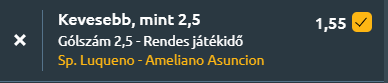 - A paraguayi első osztályban a 10. helyezett Sportivo Luqueño hazai pályán fogadja a stabilabb formát mutató, jelenleg 6. helyen álló Sportivo Amelianót az Estadio Feliciano Cáceres stadionban. Az előzetes statisztikák alapján nem valószínű, hogy gólzáporos mérkőzést látunk majd. Ennek hátterében a két együttes visszafogott támadójátéka és szervezettebb védekezése áll. A Luqueño az idényben csupán 0.62 gólt átlagol mérkőzésenként, és az elmúlt öt találkozóján mindössze 0.4-es gólátlagot hozott össze, győzelem nélkül. Emellett hét alkalommal is 2.5 gól alatti eredmény született az utóbbi tíz meccsükön. A vendég Ameliano sem bővelkedik gólokban, de valamivel eredményesebb: 1.1-es idényátlaggal és 0.95-ös kapott gól mutatóval dolgozik, utóbbi a masszív védekezésre utal. Az Ameliano utolsó öt meccsén három győzelmet aratott, és csak 0.6 gólt kapott meccsenként! Az utóbbi formák, gólátlagok és statisztikák egyértelműen arra utalnak, hogy ezúttal egy szoros, kevés gólt hozó, taktikai csata várható, ahol az első gól akár döntő lehet.