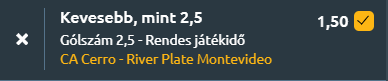 - Az uruguayi Primera Division mai játéknapján a Cerro fogadja a River Plate együttesét Montevideóban. A középmezőnyhöz tartozó csapatok ütközete papíron kiegyenlítettnek tűnik, és az elmúlt hetek formája és a szezon során nyújtott teljesítmény alapján inkább óvatos, kevés gólos mérkőzésre van kilátás. Mindkét csapat gyenge formában van: Cerro az utolsó öt meccsén egyet sem tudott megnyerni, mindössze 0,4 gólt szerzett meccsenként, miközben 1,6-ot kapott. River Plate sem szerepel jobban, 1 győzelem és 4 vereség mellett 0,4 gólos átlaggal zárta legutóbbi öt találkozóját. A szezon egészében is rendkívül alacsony a támadóteljesítmény: Cerro 0,81-es, River Plate pedig 0,65-ös gólátlagot hozott meccsenként. A két csapat legutóbbi egymás elleni mérkőzése is mindössze 1–1-es döntetlent hozott, ami szintén alátámasztja a várható gólínséget. A jelenlegi forma, az egész szezonos gyenge támadójáték és a statisztikai mutatók alapján tehát egy visszafogott, kevés helyzetet és találatot hozó mérkőzés várható.