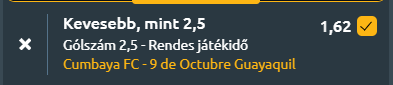- Az ecuadori Liga Pro Serie B-ben rendeznek egy erősen underes-meccset a mai játéknapon. Mindkét gárda góltermelése erősen visszafogott, alapvetően a védekezés biztonságára építő csapatokról van szó. A Cumbayá az elmúlt öt mérkőzésén átlagosan mindössze 0,6 gólt szerzett, míg a 9 de Octubre ugyanebben az időszakban 1,4 gólos átlagot hozott, de emellett csupán 0,4 gólt kapott meccsenként, ami kiemelkedő védekezési mutató! A két csapat közötti korábbi találkozók sem hoztak gólzáport: a legutóbbi három egymás elleni mérkőzésen összesen 6 gól született, ami pontosan 2 gól/meccs átlagot jelent A Cumbayá hazai pályán sem szokott sok gólt szerezni, és a 9 de Octubre idegenben is stabilan védekezik. A két csapat stílusa inkább óvatos, kontrollált játékra épül, kevés kockázattal és ritkán vállalt nyílt támadásokkal. Mindezek alapján a bukmékerek és az elemző algoritmusok is arra számítanak, hogy a mérkőzésen kevés gól születik, és a 2,5 gól alatti opció reális kimenetelnek tűnik.