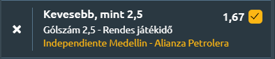 - Vasárnap este a kolumbiai Primera A bajnokságban két stabil védekezésre építő csapat találkozik, az Estadio Atanasio Girardotban az éllovas Independiente Medellín fogadja az ingadozó formát mutató Alianza Petrolerát. A mérkőzés várhatóan taktikus, kevés gólt hozó összecsapás lesz. Az Independiente Medellín az idény során mindössze 17 gólt kapott 28 mérkőzés alatt, ami 0,61-es kapott gólátlagot jelent, miközben támadásban sem túl termékeny, 29 gólt szereztek, ami 1,04-es meccsenkénti átlag. A legutóbbi három bajnokijukon két döntetlen és egy vereség született, mindhárom alacsony gólszámú találkozó volt. Az Alianza Petrolera sem lőtt kiemelkedően: 23 bajnoki góljuk 1,15-ös átlagot jelent, miközben 21-et kaptak, ami szintén nem utal gólgazdag mérkőzésekre. A két csapat legutóbbi egymás elleni találkozója 1–1-es döntetlennel zárult, és a jelenlegi formák, valamint a játékstílusok alapján most is hasonlóan szoros, kevés gólt hozó mérkőzésre van kilátás!