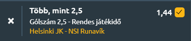 - A HJK-nak a 0–4-es első meccs után muszáj nagyarányú győzelmet aratnia, ha tovább akar jutni a Konferencia Liga selejtezőjében. Ez alapvetően már-már lehetetlen feladat, de meg fogják próbálni! Mindkét csapat meccsein gyakori vendég a gól!A HJK legutóbbi hét mérkőzéséből haton született legalább három találat, ráadásul az utóbbi tíz hazai meccséből kilencen is túllépték ezt a határt. A finn csapatnak muszáj lesz agresszívan támadnia, hogy ledolgozza a négygólos hátrányt, ami nyílt játékot vetít előre. Az NSI Runavik idei formája is a gólzáport valószínűsíti, az utolsó 11 meccsükből tíz legalább háromgólos volt, sőt 16 találkozójukból 13 négynél is több találatot hozott. Jens Christer Carl Wedeborg várhatóan ugyanazt a csapatot küldi pályára, amely a múlt héten 4–0-s győzelmet aratott, Klæmint Olsen pedig ismét kulcsfontosságú lehet a vendégek támadósorában. A hazaiaknál Jere Kallinen eltiltás miatt nem játszhat, de Miika Nuutinen együttese számára nincs más út, mint a támadás. Ezeket a tényeket figyelembe véve a találkozó szinte biztosan bővelkedni fog helyzetekben és gólokban, így a több mint 2,5 találat logikus választásnak tűnik.