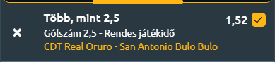 - A bolíviai bajnokság mai játéknapján a 10. helyezett Real Oruro fogadja a 8. pozícióban álló San Antonio Bulo Bulo csapatát, és a statisztikák alapján látványos, több gólos összecsapásra lehet számítani. Lássuk a számokat! A Real Oruro legutóbbi meccsén 3-2-re győzött a Nacional Potosí ellen, ami megerősíti támadóerejét, és az elmúlt öt találkozón 2,2 gólos meccsenkénti átlaggal, valamint 2,4-es kapott gólátlaggal játszott, ami szintén gólgazdag mérkőzésekre utal. A vendégek legutóbb ugyan 3-0-ra kikaptak az Once Caldas ellen, de szezonbeli 1,62-es lőtt és 1,92-es kapott gólátlaguk szintén azt vetíti előre, hogy sok gól születhet. A Real Oruro szezonbeli 1,43-as rúgott és 1,71-es kapott gólátlaga tovább erősíti ezt a várakozást, így minden jel arra utal, hogy több mint 2,5 gól eshet a mérkőzésen.