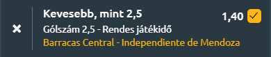 - Izgalmas összecsapásra készülhetnek a szurkolók az argentin bajnokság mai játéknapján, ahol a győzelemmel rajtoló Barracas Central a vereséggel nyitó Independiente Rivadaviát fogadja az Estadio Claudio Chiqui Tapia stadionban. A két csapat legutóbb január végén gól nélküli döntetlent játszott egymással, és az elmúlt öt egymás elleni találkozójukból háromszor is döntetlen született, ami szoros, kiegyenlített párharcra és kevés gólra utal. Nézzük a számokat, amelyek visszanyúlnak a legutóbbi bajnokságba is. A Barracas Central meccsenként mindössze 1,17 gólt szerez és ugyanennyit kap, az utóbbi öt mérkőzésén pedig csupán 0,8-as gólátlagot produkált. Az Independiente Rivadavia bár az utóbbi öt találkozóján 1,6 gólos átlagot hozott, összességében ő is visszafogottabb támadójátékkal rendelkezik, szezonbeli átlaga megegyezik a hazaiakéval (1,17 gól/meccs). Az egymás elleni mérkőzések története is inkább óvatos, szoros meccsekre utal, hiszen az elmúlt öt találkozón mindkét csapat csak átlagosan 1-1 gólt szerzett, és legutóbb 0-0-ra végeztek. Mindezek alapján reális elvárás, hogy ezen a találkozón is kevés gól születik, és nagy eséllyel 2,5 alatt marad a találatok száma.