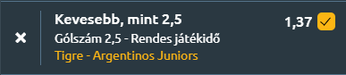 - Szintén az argentin bajnokság második fordulójában a vereséggel nyitó Tigre csapata a döntetlennel rajtoló Argentinos Juniorst fogadja az Estadio José Dellagiovanna stadionban. A két csapat legutóbb január végén találkozott, akkor az Argentinos Juniors hazai pályán 1-0-ra győzött, és az utóbbi öt egymás elleni mérkőzésükből háromszor is a Juniors diadalmaskodott. A találkozó kiegyenlített erőviszonyokat ígér és jó esély van a kevés gólos mérkőzésre is. Lássuk a számokat! Az egymás elleni mérkőzéseik is visszafogott gólszámot mutatnak, hiszen az utóbbi öt találkozón a Tigre átlagosan 0,8, míg az Argentinos Juniors 1,0 gólt szerzett meccsenként. A Tigre támadójátéka sem kiemelkedő, meccsenként 1,11 gólos átlaggal rendelkezik, miközben mindössze 0,89 gólt kap, ami szoros, zárt meccsekre utal. Bár a Juniors szezonátlaga magasabb (1,47 szerzett és 0,58 kapott gól), legutóbbi meccsén gól nélküli döntetlent játszott a Boca Juniors ellen, ami azt mutatja, hogy képes stabil védekezésre és türelmes, megfontolt játékra. Mindezek együttvéve erősen valószínűsítik, hogy a találkozón kevés gól születik, és 2,5 alatt marad a találatok száma.