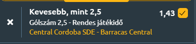 - A helyszín Argentína, ahol a Liga Profesional de Fútbol mai játéknapján a Central Córdoba SdE és a listavezető (Clausura A-csop.) Barracas Central csap össze. Kemény, taktikai csapat következik, ahol a statisztikák szerint kevés gól várható. Lássuk is a számokat! A Central Córdoba SdE jelenleg a bajnokság 6. helyén áll, mérlege 6 győzelem, 8 vereség és 6 döntetlen. A szezonban átlagosan 1,25 gólt szereznek és ugyanennyit kapnak. Az elmúlt öt mérkőzésükben kiváló formát mutattak: veretlenek maradtak 3 győzelemmel és 2 döntetlennel, miközben 1,6 gólos meccsátlagot értek el, és csupán 0,6 gólt kaptak. Legutóbbi találkozójukon 1–0-ra múlták felül a Lanúst. A Barracas Central a tabella élén áll, szezonbeli mérlege 10 győzelem, 6 vereség és 5 döntetlen. Átlagosan 1,29 gólt szereznek és 1,24-et kapnak mérkőzésenként. Az elmúlt öt találkozójukon 3 győzelmet és 2 vereséget könyvelhettek el, góllövési átlaguk 1,4, viszont védekezésben ingadozó formát mutattak, 1,6 gólt kaptak meccsenként. Legutóbb 3–1-re verték az Aldosivit. A statisztikák és a formamutatók alapján a találkozó kiegyenlített lehet, de a Central Córdoba hazai pályán, veretlen sorozattal érkezve magabiztosabbnak tűnik. Mindkét csapat gólátlaga viszonylag alacsony a szezonban (1,25 illetve 1,29 szerzett gól), és a Central Córdoba védelme az utóbbi időben kifejezetten stabil, ami csökkenti a gólgazdag mérkőzés esélyét. A vendégek védekezése ugyan sebezhetőbb, de a hazaiak óvatos, eredménycentrikus játéka, valamint a felek közötti korábbi szoros mérkőzések inkább kevés gólt vetítenek előre. Reális várakozás, hogy 2,5 gólnál kevesebb születik ezen a meccsen.
