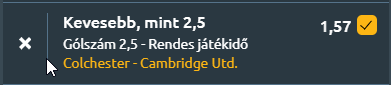 - A League Two negyedik fordulójában a Colchester United hazai pályán, a JobServe Community Stadionban fogadja a Cambridge United csapatát. A két gárda középmezőnybeli helyezése és eddigi formája alapján szoros meccs várható! A Colchester jól kezdett a bajnokságban, egy győzelem és két döntetlen áll a nevük mellett. Legutóbb a Shrewsbury Town otthonában arattak 2–0-s sikert, ami elsősorban a motivációnak, az önbizalomnak tesz jót. A szezonban eddig 1,33 gólt szereznek átlagban, miközben csupán 0,67-et kapnak, a védelem masszív, jól zár! A Colchester sokkal inkább szervezett, óvatos futballt játszik, masszív védekezéssel és ritkán születik gólzápor! A Cambridge United abszolút felemás módon kezdett, hiszen mindhárom kimenetelből begyűjtött egyet-egyet. A legutóbbi mérkőzésükön 1–1-es döntetlent játszottak a Harrogate Town ellen. A Swindon elleni 3-2-es vereség kapcsán belementek egy nagy adok-kapokba, de alapvetően kevés gól szokott lenni a találkozóikon. A Colchester elleni egymás elleni mérlegük kedvezőbb, mivel az utolsó öt párharcból hármat megnyertek, egyszer kikaptak és egyszer döntetlent játszottak. A mérkőzés esélyei kiegyenlítettek, de a statisztikák egyértelműen a kevés gólt vetítik előre. A Colchester stabil, alacsony gólszámú találkozókat játszik, míg a Cambridge ugyan több gólt szerez, de a védekezésük nem mindig megbízható. Az under 2,5 gól opció eséllyel megjöhet!