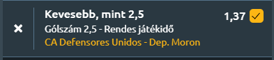 - Az argentin Primera B Nacionalban a kiesőzónában vergődő Defensores Unidos fogadja a dobogóközelben álló Deportivo Morónt. A Defensores Unidos rendkívül gyenge szezont fut, hiszen mindössze három győzelmet arattak, miközben tizenhatszor kaptak ki és tíz döntetlent játszottak, így a tabella 17. helyén szerénykednek. A góltermelésük szinte teljesen elmarad az elvárhatótól, átlagosan mindössze 0,59 gólt szereznek, miközben 1,62-t kapnak mérkőzésenként. Legutóbb ugyan 1-0-ra győztek a Talleres Remedios de Escalada otthonában, de összességében a támadójáték továbbra is súlytalan. A Deportivo Morón ezzel szemben a tabella 4. helyén áll, sokkal stabilabb formát mutatva. Eddigi mérlegük 13 győzelem, 11 döntetlen és mindössze 5 vereség, ami a kiegyensúlyozott teljesítményüket igazolja. Átlagosan 1,07 gólt szereznek és 0,61-et kapnak meccsenként, tehát elsősorban masszív védekezésük az erősségük. Legutóbb 1-1-es döntetlent értek el az Estudiantes de Buenos Aires ellen. A Defensores Unidos képtelen rendszeresen betalálni, míg a Morón stabil védekezése gyakran tartja alacsonyan az eredményeket. Az elmúlt hetek átlagos gólmutatói is visszafogottak, így minden adott ahhoz, hogy ezúttal is 2,5 gól alatti mérkőzést lásson a közönség.