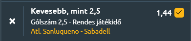 - A helyszín Spanyol harmadik vonal, ahol a Sanluqueño a hazai pályán, az Estadio El Palmarban fogadja a Sabadell együttesét. Mindkét csapat gyengén kezdte a szezont, így a pontszerzés kiemelten fontos lesz. A Sanluqueño eddig egy döntetlennel kezdte az idényt a bajnokságban, gólt nem szerzett és nem kapott. Legutóbbi mérkőzésén az Atlético Madrid II ellen 0–0-s döntetlent ért el, ami jelzi a csapat visszafogott támadójátékát. Az elmúlt öt találkozón két győzelmet, egy vereséget és két döntetlent könyvelhetett el, átlagosan 1 gólt szerzett és 1-et kapott meccsenként. A Sabadell szintén egy döntetlennel kezdte az idényt, gólt sem szerzett, sem kapott az első fordulóban az Eldense ellen. Az elmúlt öt mérkőzésük során egy győzelmet, egy vereséget és három döntetlent értek el, átlagosan 1 gólt szereztek és 1,2-t kaptak meccsenként. Mindkét együttes visszafogottan kezdte a szezont, az első fordulóban egyik csapat sem tudott gólt szerezni. Az elmúlt mérkőzések statisztikái is alátámasztják a gólcsendes találkozó esélyét: mindkét fél átlagosan körülbelül 1–1 gólt ér el meccsenként, és a védelmük sem engedi könnyen a gólszerzést. Ezek alapján nagy valószínűséggel kevesebb mint 2,5 gól születik a találkozón.
