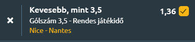 - A Ligue 1 mai játéknapján a Nice hazai körülmények között fogadják a Nantes csapatát. A hazaiak legutóbb súlyos vereséget szenvedtek Le Havre ellen, míg a vendégek minimális különbséggel múlták felül az Auxerre együttesét. A Nice számára felemásan indult az idény, hiszen idegenben még nem szereztek pontot, ugyanakkor hazai pályán erősek: előző öt hazai bajnokijukból négyet megnyertek, és ezeken rendre stabil védekezést mutattak, hiszen legfeljebb egy gólt kaptak. Ugyanakkor a legutóbbi fordulóban 3–1-es vereséget szenvedtek Le Havre ellen, ami intő jel lehet Franck Haise együttesének. A Nantes eddig szintén hullámzó teljesítményt mutatott, ám legutóbb megszerezték első győzelmüket az Auxerre ellen, amely egyben Luis Castro vezetőedző első sikere volt új csapatával. A kanárik azonban idegenben gyengébben teljesítenek: három mérkőzés óta nyeretlenek vendégként, és rendre egy vagy annál kevesebb gólt érnek el. A találkozó esélyeit tekintve a Nice hazai pályán ugyan erősebbnek tűnik, de a Nantes ellen rossz sorozatuk miatt nem számíthatnak könnyű mérkőzésre. A hazaiak minimális különbséggel, 1–0-ra győzhetnek, ami illeszkedik mindkét csapat eddigi formájához, kevés szerzett gól, stabil védekezés és szoros mérkőzések. A Nantes támadójátéka még akadozik, míg a Nice inkább otthonában mutat erőt, de sérülések sújtják. Mindezek alapján indokolt a várakozás, hogy a találkozón 3,5 gól alatt marad a gólszám.