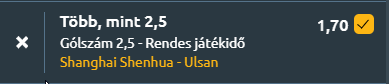 - Magyar idő szerint kora délután, az AFC Champions League Elite soroaztában a Shanghai Shenhua hazai körülmények között fogadja az Ulsan HD együttesét. Gólgazdag mérkőzés várható. A Shanghai Shenhua eddig egy vereséget szenvedett el, győzelmet vagy döntetlent még nem jegyeztek ebben a sorozatban. A csapat átlagosan egy gólt szerez és kettőt kap mérkőzésenként a nemzetközi porondon. Az elmúlt öt találkozójukon egy győzelmet arattak, kétszer kikaptak és kétszer döntetlent játszottak, miközben 2,2 gólt szereztek és 1,6-ot kaptak átlagosan. Az Ulsan HD eddig egy győzelmet aratott, vereséget nem szenvedett, döntetlenje pedig egy sincs ebben a sorozatban. A csapat átlagosan két gólt szerez és egyet kap mérkőzésenként. Az elmúlt öt találkozójukon egy győzelem, egy vereség és három döntetlen szerepel, miközben csupán 0,8 gólt szereztek és egyet kaptak átlagosan. Mindkét csapatnál nagyon gyakori a gólváltós meccs. A Shanghai Shenhua legutóbbi 6-1-es győzelme, valamint az Ulsan HD korábbi három egymás elleni győzelme, melyeken összesen kilenc gólt szereztek, tovább erősíti azt a várakozást, hogy a találkozón több mint 2,5 gól esik majd. A támadójáték mindkét oldalon képes meglepetést okozni, így látványos, eseménydús mérkőzésre van kilátás.