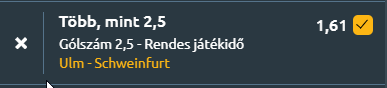 - A német harmadosztályú bajnokság mai játéknapján két alsóházi csapat, az Ulm és a Schweinfurt meccsel egymással a csodálatos dunaparti városban. Az Ulm jelenleg a 3. Liga tabellájának 14. helyén áll, és eddig három győzelmet, négy vereséget, valamint egy döntetlent jegyez a szezonban. A csapat átlagosan 1,38 gólt szerez és 1,63-at kap mérkőzésenként, ami kiegyensúlyozott teljesítményre utal. Legutóbb szeptember 28-án 1-1-es döntetlent játszottak a Hoffenheim II ellen. Az elmúlt tíz mérkőzésükből hétszer fordult elő, hogy több mint 2,5 gól esett, ami a támadójáték aktivitását és a védelem sebezhetőségét egyaránt jelzi. A Schweinfurt a bajnokság utolsó, 20. helyén áll, és eddig csupán egy győzelmet aratott, hét alkalommal vereséget szenvedett, döntetlent pedig még nem játszott. A csapat átlagosan mindössze 0,63 gólt szerez és 2,5 gólt kap mérkőzésenként, gyenge védelemmel és kevésbé hatékony támadójátékkal rendelkezik. Mindkét csapat mérkőzésein gyakori a gólzápor: az elmúlt tíz találkozójukból hétszer esett legalább három gól. Az Ulm kiegyensúlyozottabb formát mutat, míg a Schweinfurt védelme különösen sebezhető, amit a 2,5-es kapottgól-átlag is alátámaszt. Mindezek alapján reális a várakozás, hogy a találkozón több mint 2,5 gól esik!