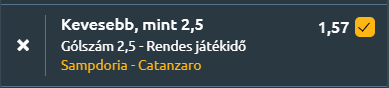 - Az olasz másodosztályban a sereghajtó Sampdoria fogadja a középmezőnyben helyezkedő Catanzaro együttesét. A Sampdoria rendkívül gyenge formában van, jelenleg a Serie B tabellájának utolsó, 20. helyén áll. Az idei szezonban még nem tudtak győzelmet aratni, négy vereség mellett mindössze egy döntetlent értek el. A csapat támadójátéka kifejezetten gyenge, viszont a védelme nem rossz, hiszen mérkőzésenként átlagosan csak 0,6 gólt szereznek, miközben 1,8-at kapnak. Legutóbb szeptember 27-én 1-1-es döntetlent játszottak a Bari 1908 ellen. Az elmúlt tíz mérkőzésükből hétszer fordult elő, hogy kevesebb mint 2,5 gól esett. A Catanzaro stabilabb teljesítményt nyújt, jelenleg a Serie B 12. helyén áll. Bár az idei szezonban még nem nyertek mérkőzést, vereséget sem szenvedtek, öt döntetlennel zárták eddigi összecsapásaikat. A csapat átlagosan 1,2 gólt szerez és ugyanennyit kap mérkőzésenként, ami kiegyensúlyozott védekezésre és visszafogott támadójátékot enged feltételezni. Mindkét csapat mérkőzésein gyakori a kevés találat, az elmúlt tíz találkozójukból hétszer esett legfeljebb két gól. A Sampdoria gyenge támadójátéka és a Catanzaro kiegyensúlyozott, de nem túl eredményes szereplése miatt valószínű, hogy a találkozón nem születik három vagy annál több gól.