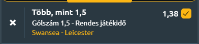 - Szombat délután a Championship nyolcadik fordulójában Swansea City és Leicester City csap össze Dél-Walesben. A Swansea az elmúlt években rendre a középmezőnyben végzett, és bár a cél a feljutás közelébe kerülés lenne, a legutóbbi hetek formája azt mutatta, hogy nehéz lesz tartani a lépést a legjobbakkal. A hét közepén azonban fontos győzelmet arattak a Blackburn otthonában. A Premier League-ből frissen kiesett Leicester City nehezen találja a győztes formát, bár veretlenségi sorozatuk immár hat mérkőzésre nyúlik. Ezek közül azonban négy döntetlennel végződött, köztük a legutóbbi, amikor a Wrexham ellen Jordan James góljával még megszerezték a vezetést, ám végül be kellett érniük az egy ponttal. A Rókák így az utóbbi négy bajnokin mindössze négy pontot szereztek, aminek következtében a feljutást érő második helyhez képest hárompontos hátrányban, a tabella hatodik helyén állnak. A Swansea az utóbbi fordulóban bizonyította, hogy képes hatékonyan támadni, különösen Vipotnik jó formájának köszönhetően, ugyanakkor védekezésük ingadozó, amit a Leicester minőségi támadói könnyen kihasználhatnak. A vendégek ugyan döntetlenekbe ragadtak az elmúlt hetekben, de rendre betalálnak, és támadóerejük bőven elegendő lehet egy idegenbeli győzelemhez is, de legalábbis minimum két gólt várhatunk a meccsen!
