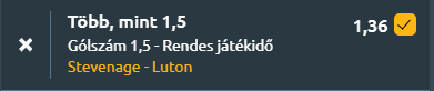 - League One-rangadót rendeznek a hétvégén, ahol a Stevenage hazai pályán fogadja a Luton Town csapatát. A hazaiak az élre ugorhatnak a tabellán, míg a vendégek a felsőházba való visszatérés reményében vágnak neki az összecsapásnak. A Stevenage tavaly a 14. helyen zárta a szezont, így kevesen számítottak arra, hogy ilyen erőteljes rajtot vesznek az új idényben. Alex Revell csapata szeptemberben veretlen maradt, és a stabil védekezés mellett a támadósor is kitűnően termeli a gólokat. A Boro az utóbbi öt mérkőzésén tizenegyszer talált a kapuba, ami jól mutatja a csapat formáját. A Luton Town esetében sokan a bajnoki címért folyó harc egyik esélyeseként számoltak, ám a hullámzó teljesítmény eddig visszavetette őket. Az elmúlt négy mérkőzésükből mindössze egyet tudtak megnyerni, és bár az előző fordulóban Gideon Kouda hosszabbításban értékesített büntetőjével pontot mentettek, így elkerülték ötödik vereségüket, továbbra sem találtak igazán stabil formát. A Stevenage támadósora kifejezetten jó formát mutatott az elmúlt hetekben, hiszen öt meccsen tizenegy gólt szereztek, miközben hazai pályán eddig veretlenek maradtak. A Luton ugyan ingadozó teljesítményt nyújtott, de támadásban rendre képes helyzeteket kialakítani és betalálni, ahogy azt a legutóbbi meccsükön is bizonyították. A vendégek védelmi bizonytalansága, illetve a Stevenage lendülete könnyen vezethet oda, hogy legalább két gól születhet a mérkőzésen!